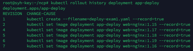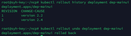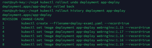 - kubectl rollout undo deploy <deploy_name> : 바로 History 전 단계로 돌아감