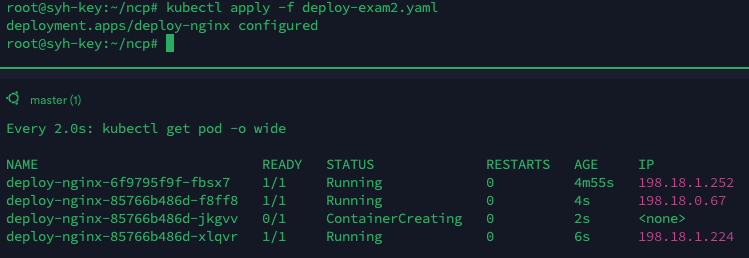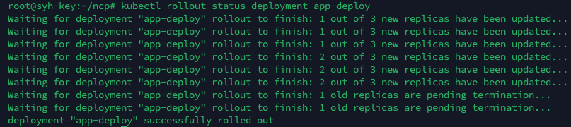 - kubectl rollout status deployment <deployment-name> : 현재상태 확인