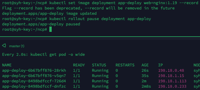- kubectl rollout pause deployment <deployment-name> : 업데이트 일시정지
