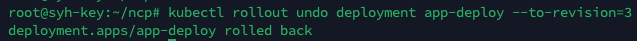 - kubectl rollout undo deploy <deploy_name> --to-revision=<revision-number> : 원하는 revision number로 돌아감
