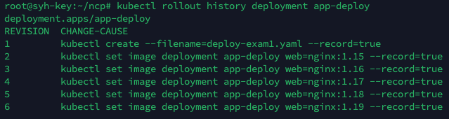 - kubectl rollout history deployment <deployment-name> : 업데이트 내역 확인