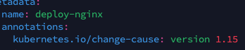 - kubernetes.io/change-cause: version 1.14 이렇게 추가하고 이미지도 1.14로 맞춰주고 실행