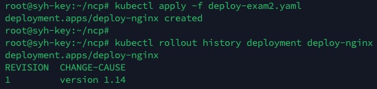 - yaml 실행 후 history를 보면 kubernetes.io/change-cause: version 1.14 대로 1.14 들어간거 확인