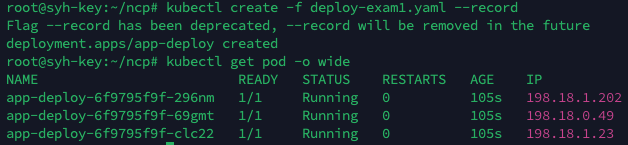- deploy의 이름으로 rc의 이름이 정해지고 그 rc의 이름으로 pod의 이름이 정해진다.