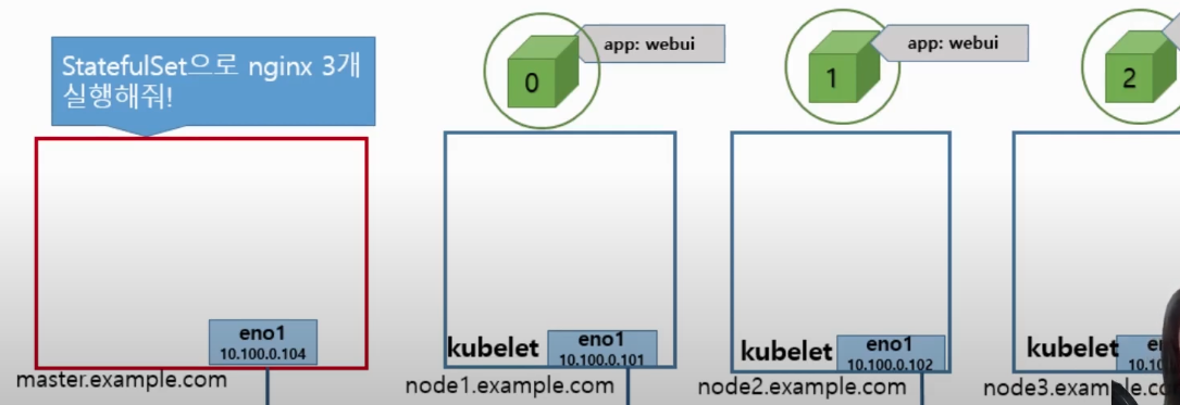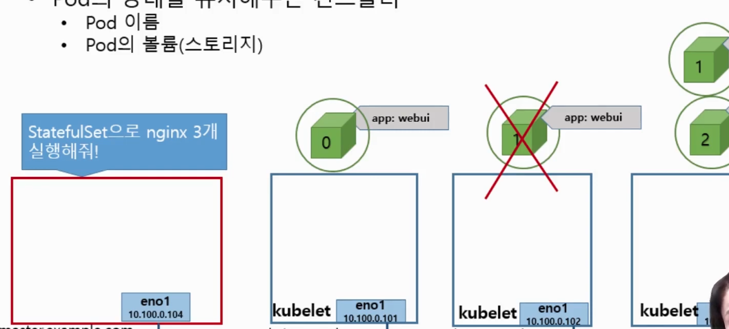 - 이것이 지금까지 봤던 컨트롤러들과 다른 점으로 statefulSet은 어떤 번호가 추가될 것인지, 삭제될 것인지 알 수 있다.