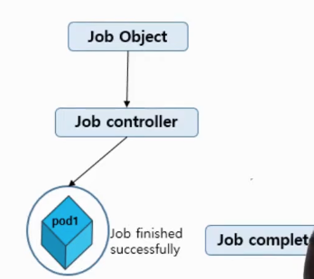 - job controller는 pod를 실행하고 그 pod가 완료되면 complete 상태로 끝난다.