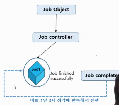 - Job : 배치처리에 유용, Pod가 정상적인 종료인지 아닌지 판단해서 리스타트할지 완료시킬지 결정