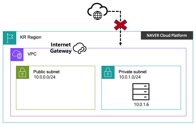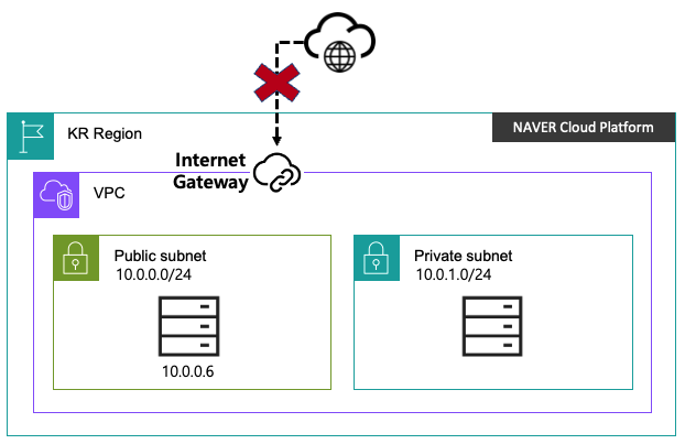 외부통신이 가능한 Public에 서버를 생성했지만 서버에 공인IP가 없어 접속이 불가능한 상황 입니다.