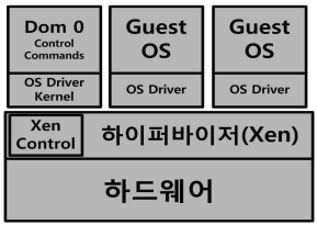 - 하지만 VM의 대부분 동작이 하이퍼바이저의 중계를 통해 이루어지므로 병목현상에 따른 성능저하 가 발생하게 된다
