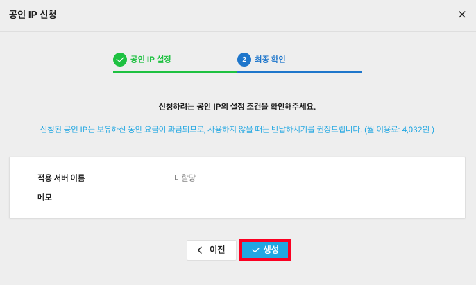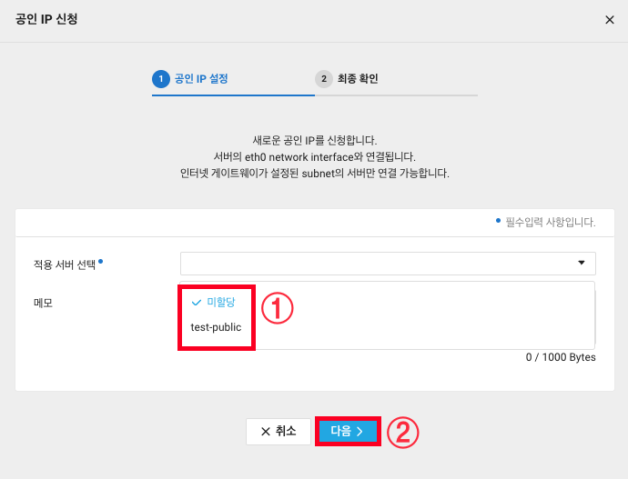 3. Public IP는 생성과 동시에 서버에 적용할 수도 있는데 이번에는 미할당으로 생성해보겠습니다.