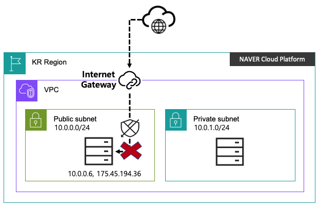 ACG는 기본으로 ALL Deny 상태이므로 사용할 서비스들을 ACG에서 오픈해줘야 합니다.