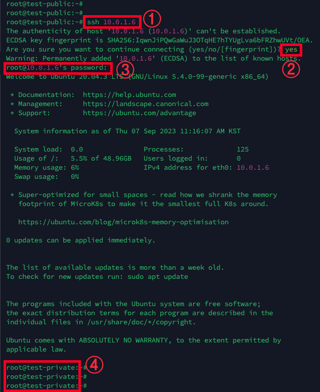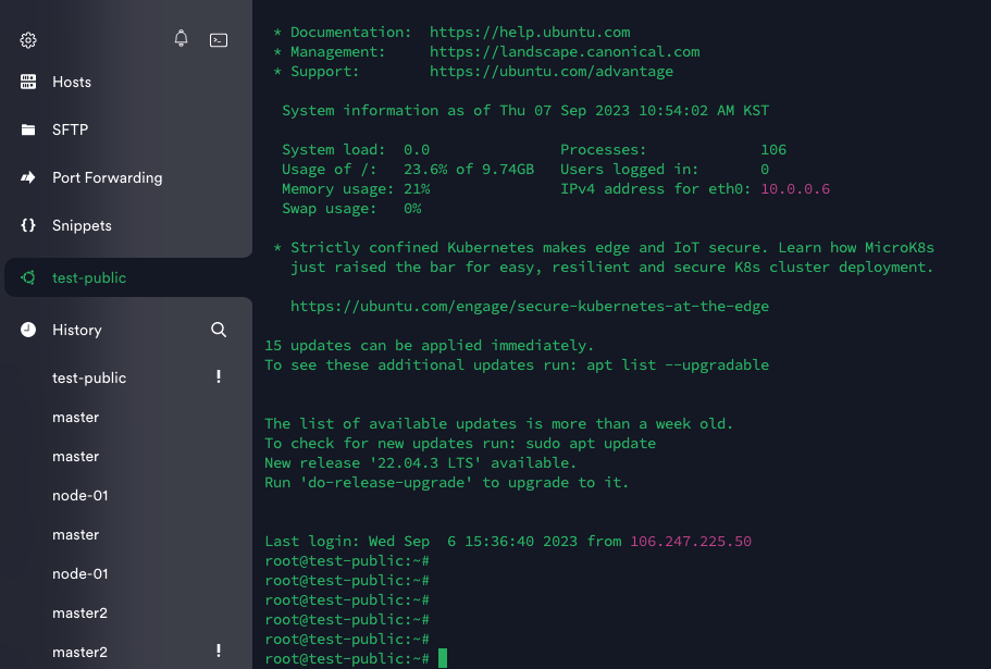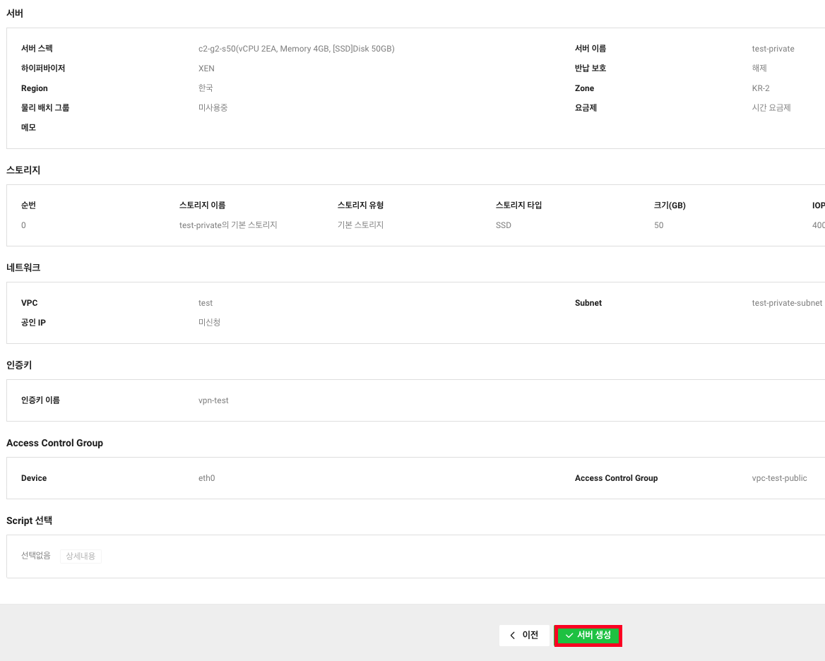9. Private 서버가 생성되는 동안 Private 서버 접속을 위해 Public 서버에 접속해 둡니다.