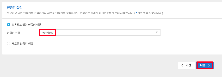 6. 인증키도 먼저 만든걸 그대로 쓰겠습니다. 다음을 클릭합니다.