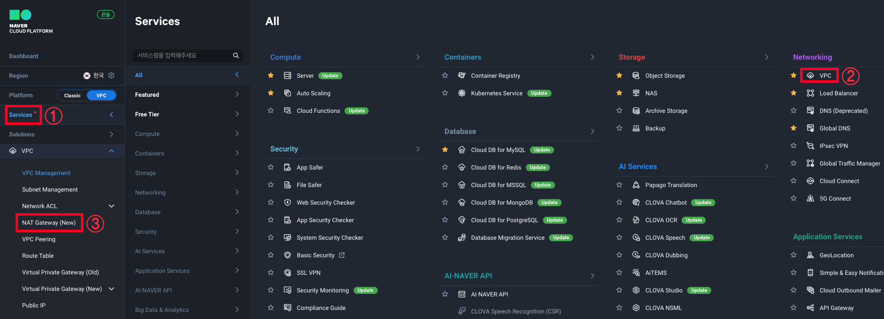 16. Service -> Networking -> VPC -> NAT Gateway(New)를 클릭합니다.