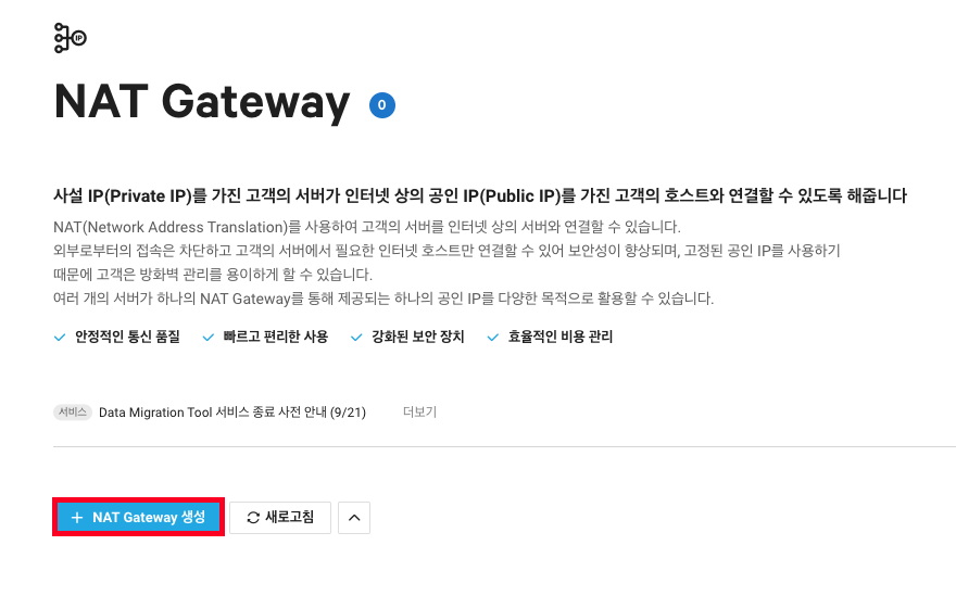 이제 NAT Gateway를 생성해 외부에 요청을 보내보겠습니다.