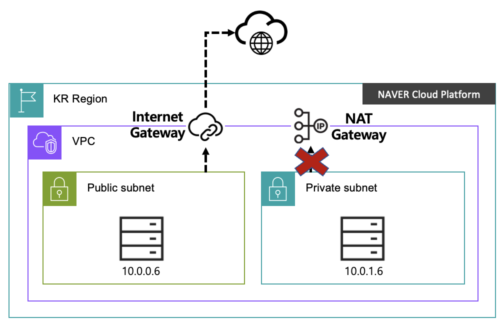 - NAT Gateway는 여러 대의 비공인 IP를 가진 서버가 공인 IP 주소를 가진 외부 서버와 통신할 수 있도록 연결하는 NAT 서비스입니다