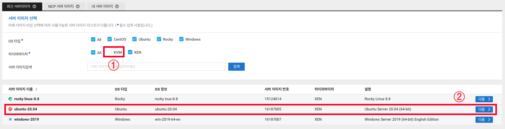 3. 3세대 서버는 현재 1대만 생성 가능하니 KVM을 체크 해제하고 2세대로 Ubuntu 서버를 만들겠습니다.
