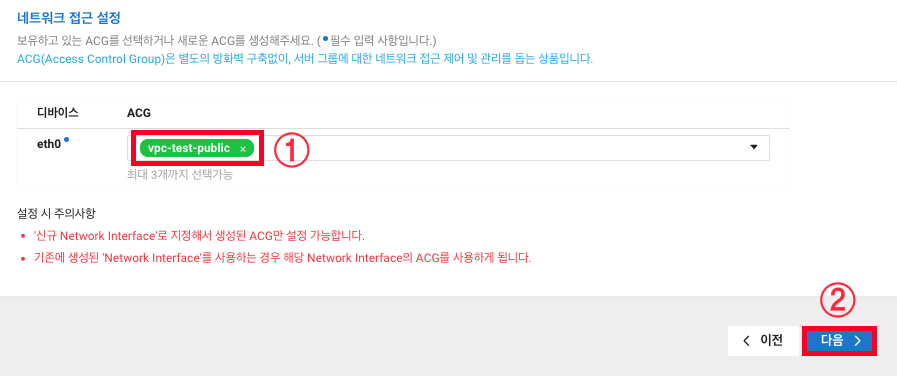7. ACG도 Public Server때 만들어둔걸 사용하겠습니다. 다음을 클릭합니다.