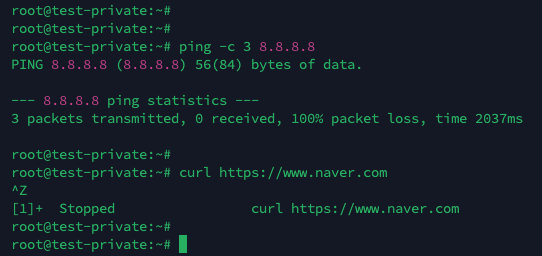 23. NAT Gateway가 생성되었습니다. 이제 서버로 돌아가 ping을 쏴봅시다.