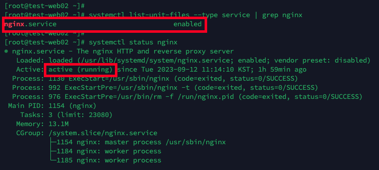 5. Web02 서버에 접속하여 Nginx의 상태를 확인해보겠습니다.