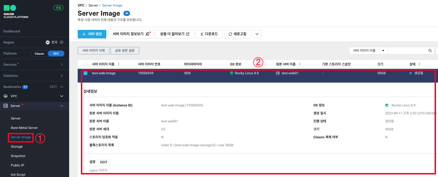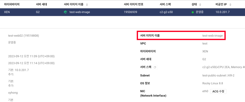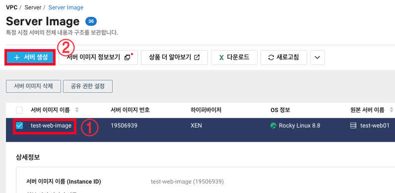 Server Image 기능을 통해 Web서버를 하나 더 만들어봤습니다.