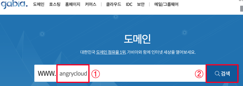 5. 가비아를 둘러보고 원하는 도메인명을 적은 다음 검색을 클릭합니다.