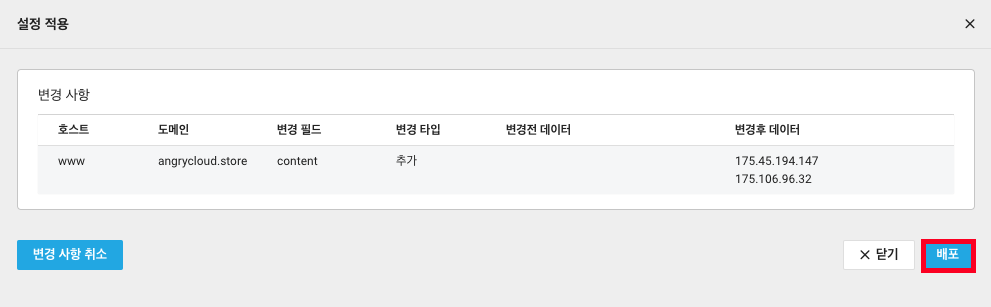 11. 레코드를 추가 했다고 바로 끝나는게 아닙니다. 꼭 설정 적용을 클릭해줍니다.