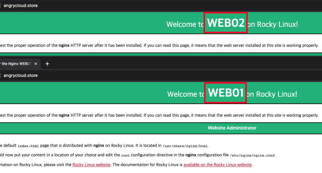 18. Web01과 Web02로 접속이 되는 것을 확인합니다.