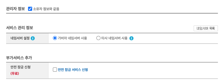 3. 신청 페이지에서 조금 내려가보면 네임서버 설정이 보입니다.