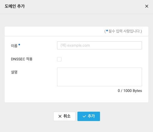 4. 가비아에서 봐뒀던 도메인명을 입력하고 추가를 클릭합니다.