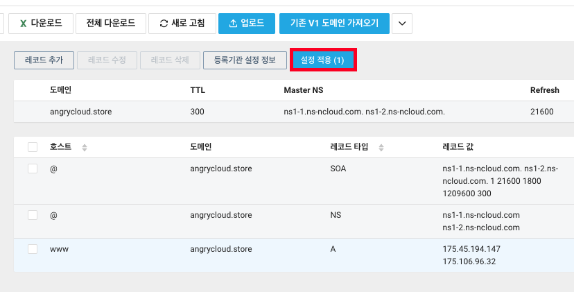 11. 레코드를 추가 했다고 바로 끝나는게 아닙니다. 꼭 설정 적용을 클릭해줍니다.