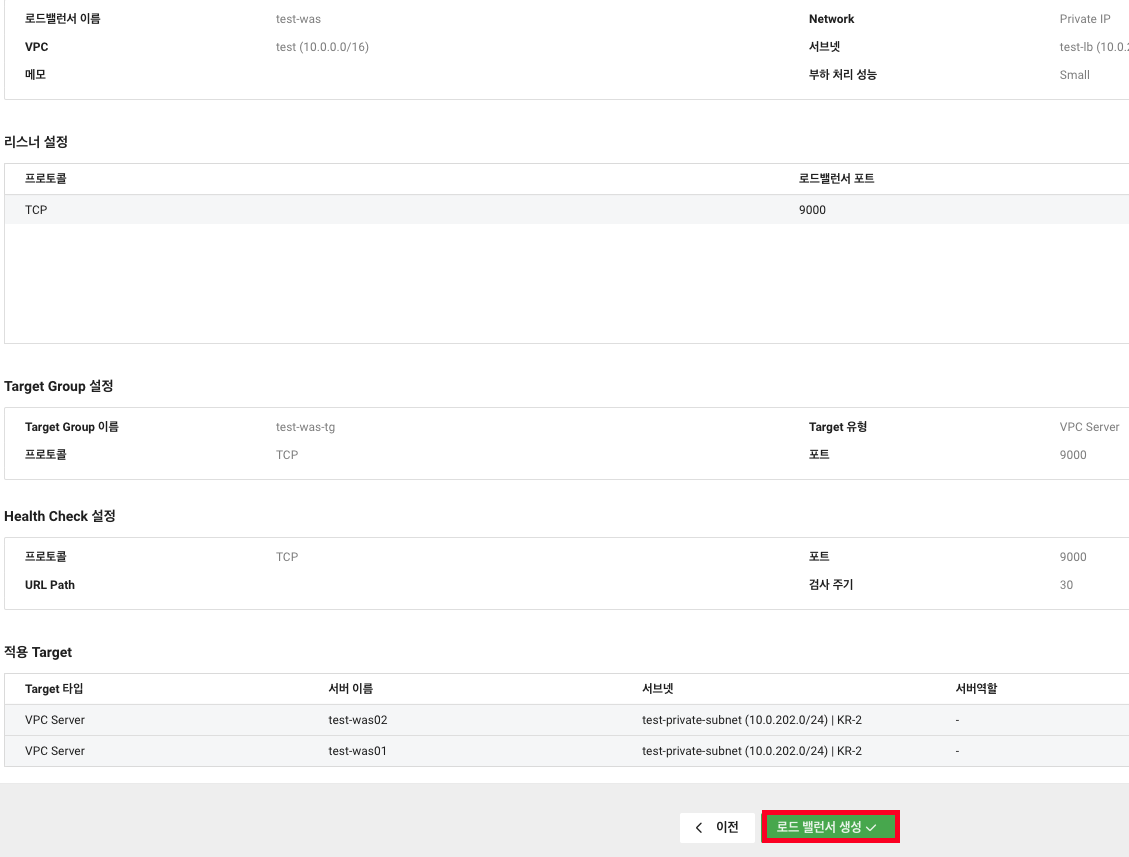 Network : 내부(Web -> Was)의 트래픽을 분산할 용도니 Private를 선택합니다.