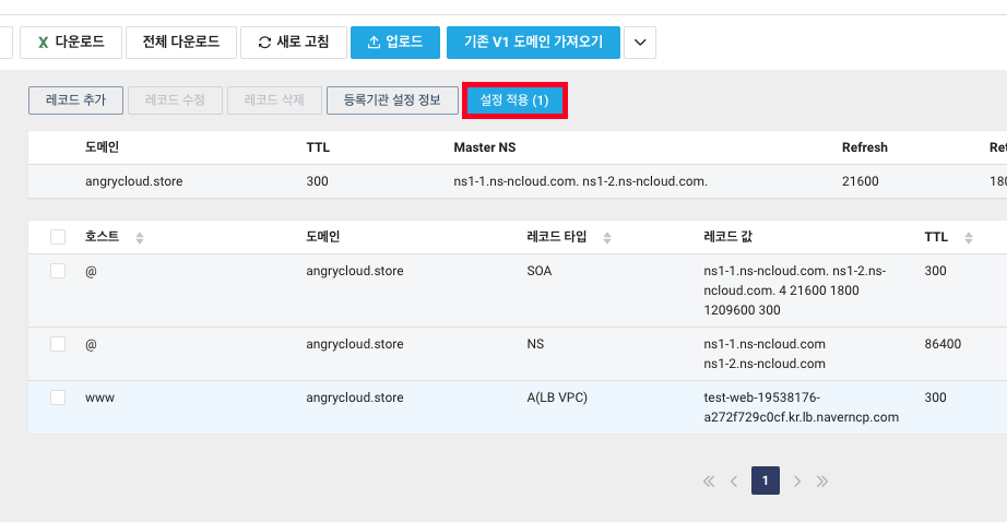1. 이제 LB의 접속정보를 통해 외부에서 웹서버에 접속할 수 있도록 Global DNS에서 레코드를 수정해보겠습니다.