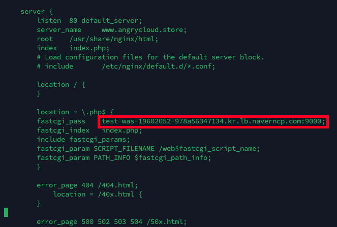 fastcgi_pass test-was-19602052-978a56347134.kr.lb.naverncp.com:9000;
