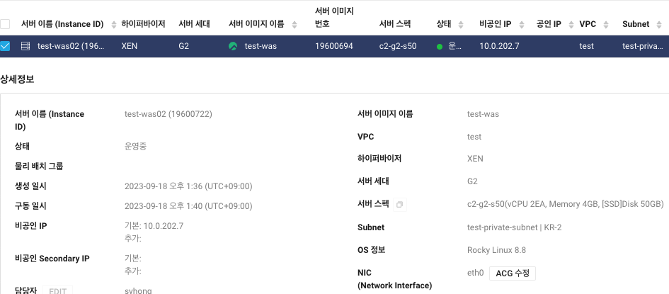4. web에서 was로 php 요청을 보내는 것에 대해서는 확인이 끝났으니 NLB 테스트를 위해 Server Image로 was01을 복사해 was02 서버를 만들어줍니다.