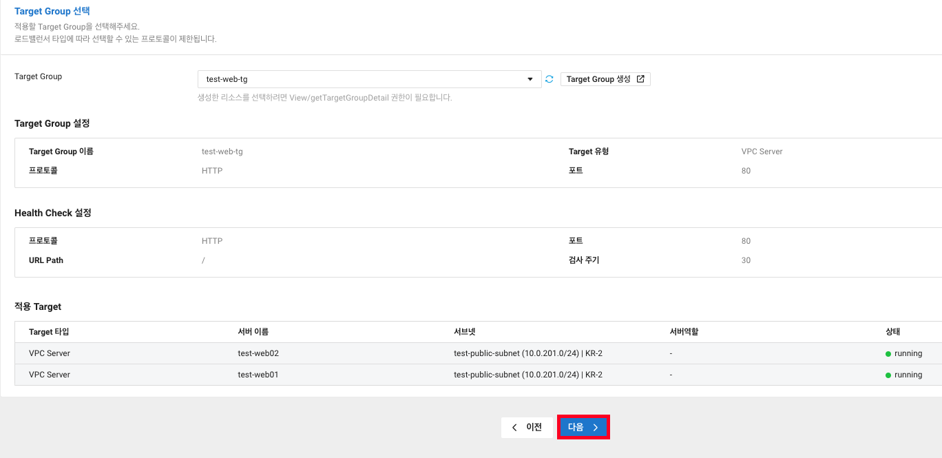 5. LB용 서브넷 선택 후 다음을 클릭합니다.