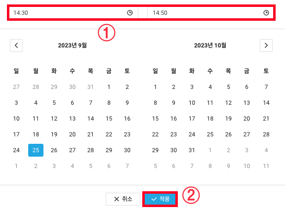 저는 간단히 테스트 하는거니 당일 14:30~14:50까지 20분간만 지정하겠습니다.