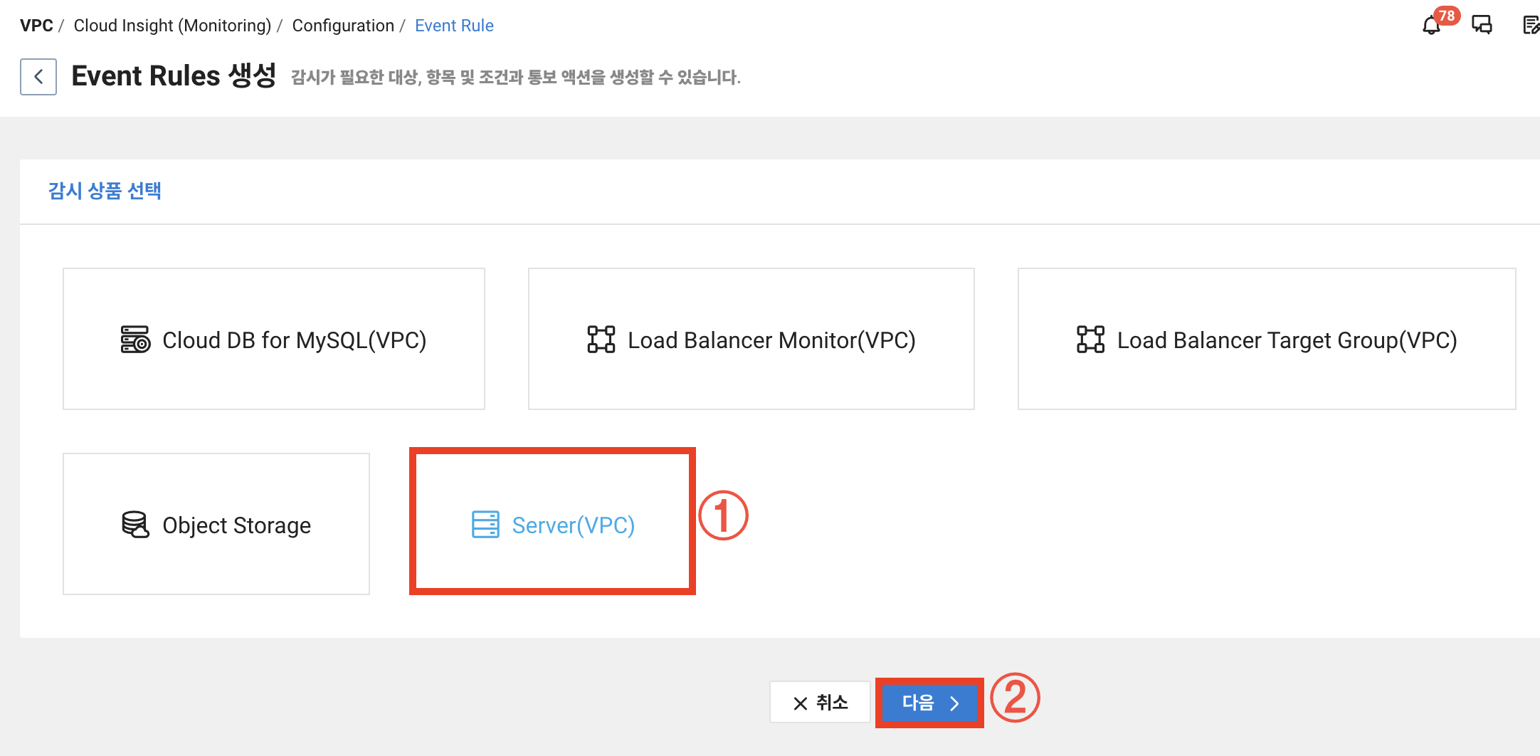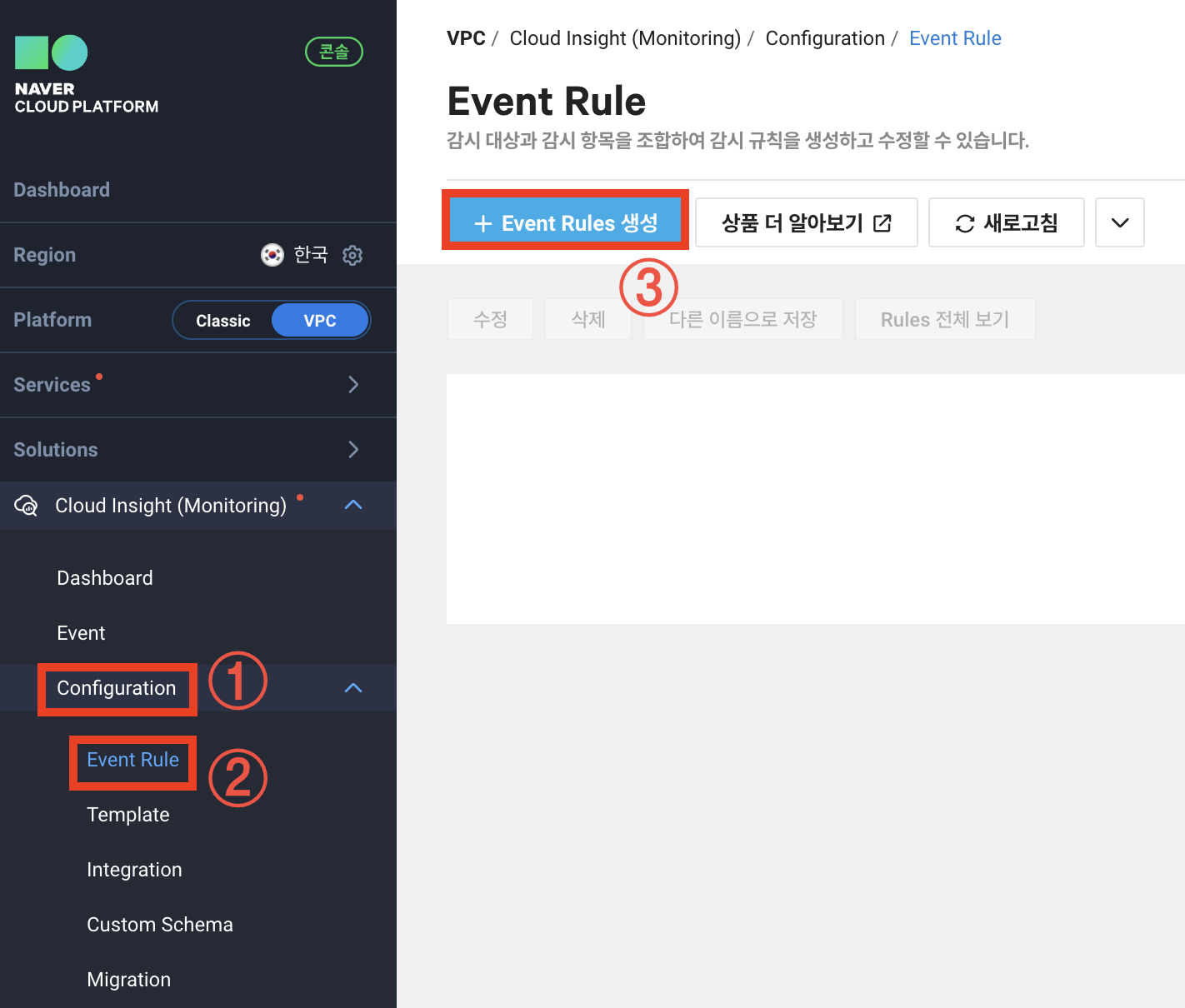 이제 Cloud Insight에 이벤트를 설정하고 해당 이벤트 발생시 담당자에게 알람이 가도록 해보겠습니다.
