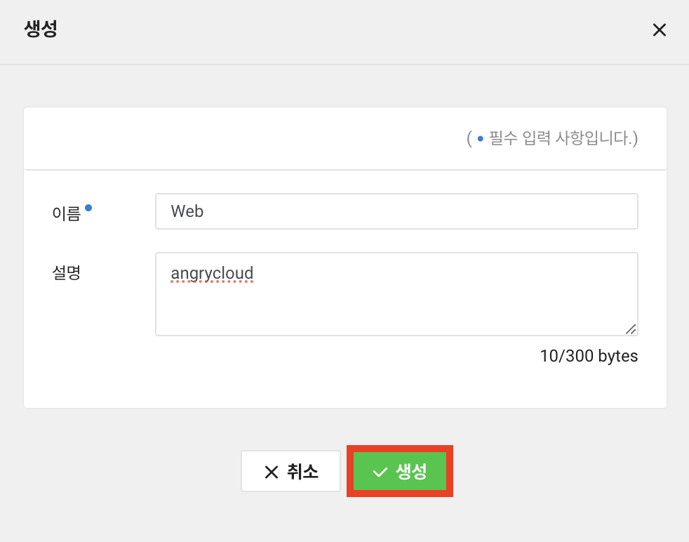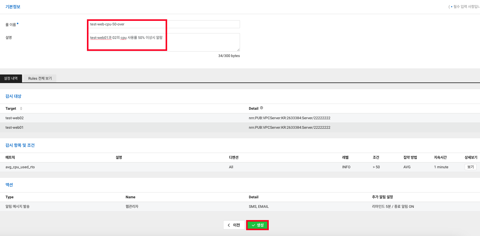 9. 마지막으로 룰의 이름과 설명을 적고 생성을 클릭합니다.