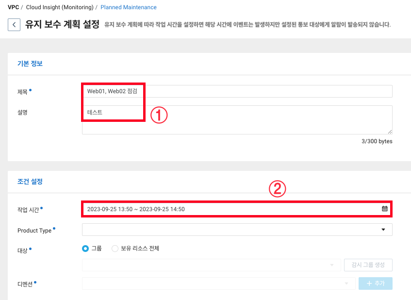 - 유지 보수 일정을 설정하여 해당 기간에는 해당 자원에서 어떠한 이벤트가 발생하더라도 알람이 발생하지 않게 할 수 있다.