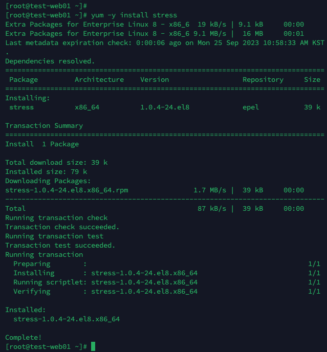 11. cpu 사용률 테스트를 위해 stress를 설치합니다.