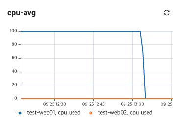 cpu에 부하를 준 web01 서버의 그래프가 100까지 올라간게 보입니다.