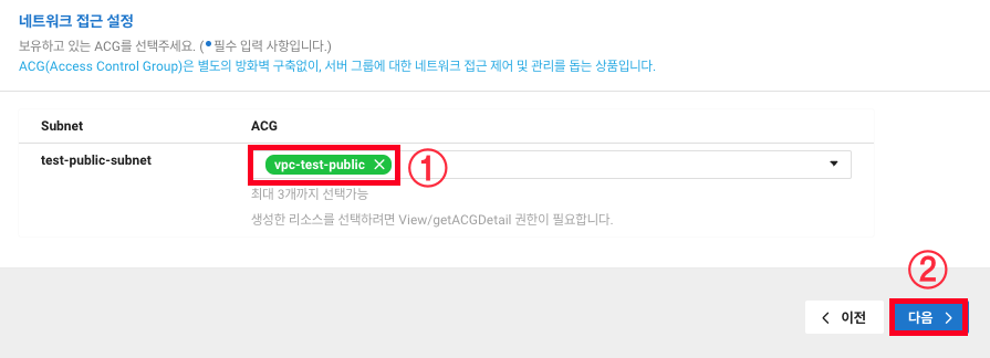 # 서버가 배치될 VPC를 선택합니다. 전 test vpc만 생성했으므로 test를 선택했습니다.