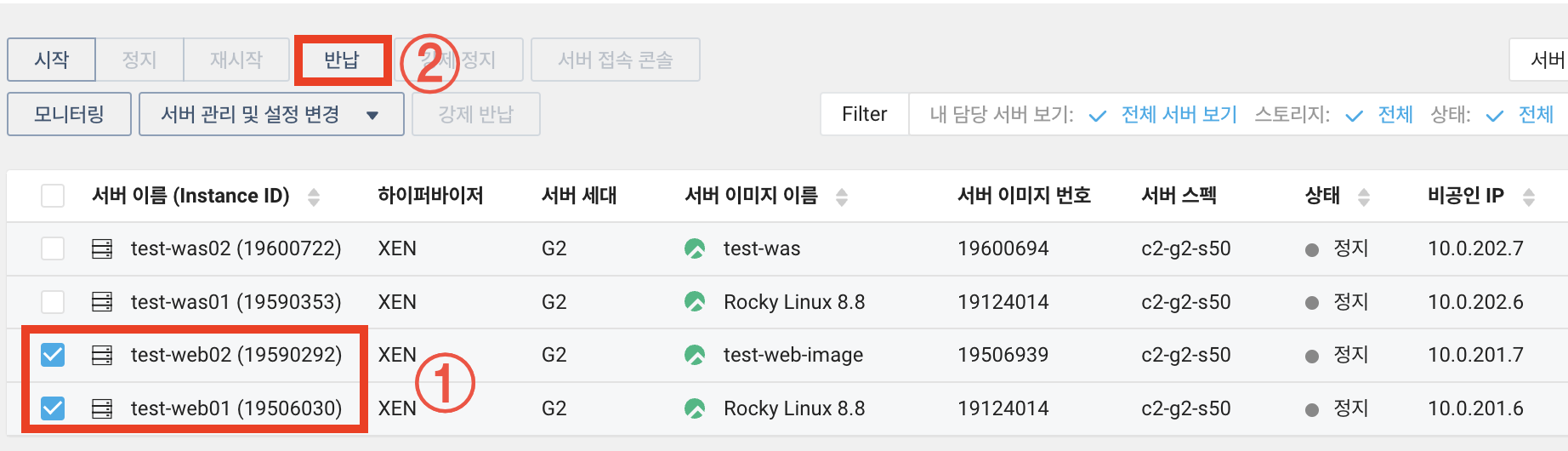- Auto Scailng으로 Web서버를 생성할거니 시작 전에 앞서 생성했던 Web01과 Web02 서버를 반납하겠습니다.