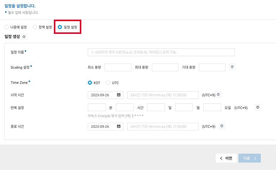 - 예시: 매주 월요일 오전 9시부터 오후 5시까지 스케일 업을 수행하여 주중 업무 시간에 대응하거나, 큰 프로모션 이벤트가 예정된 날짜에 스케일 업을 수행합니다.