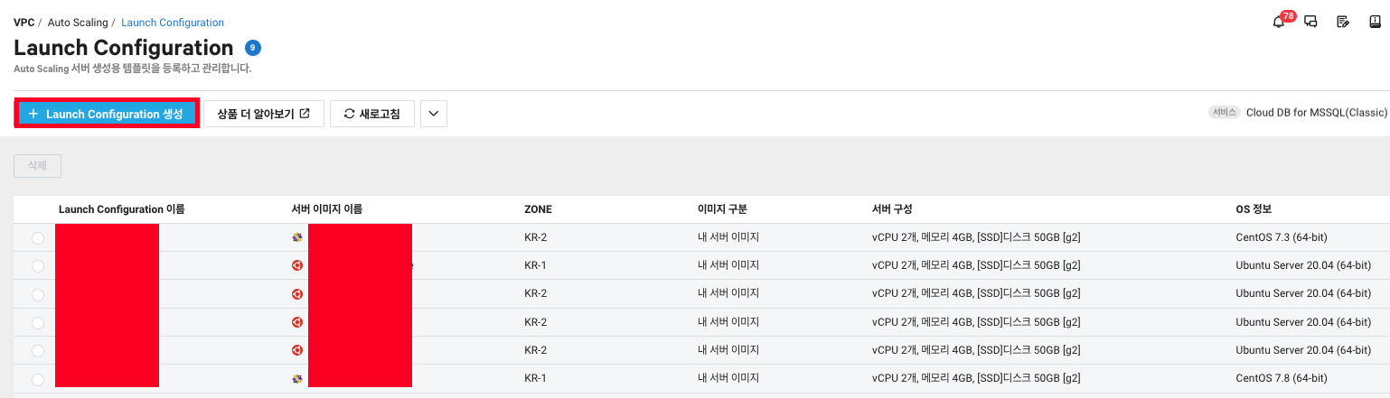 2. Auto Scaling에 어떤 서버를 쓸 건지 구성을 해줘야 합니다. Launch Configuration 생성을 클릭합니다.