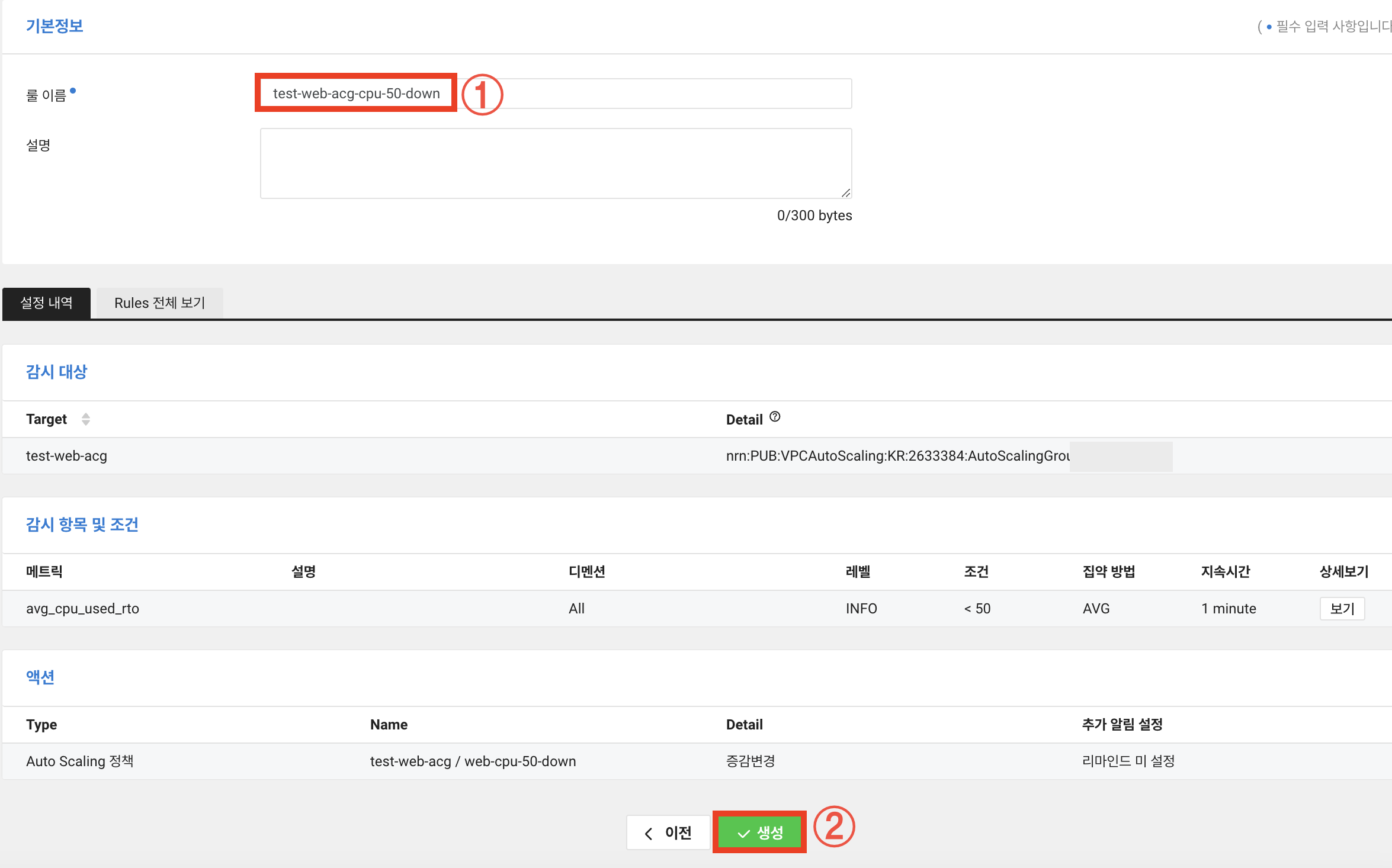 12. Auto Scaling Group의 이벤트 룰이 생성되었습니다.