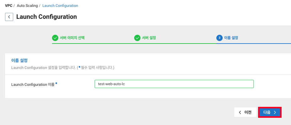 5. Launch Configuration의 이름을 정하고 다음을 클릭합니다.