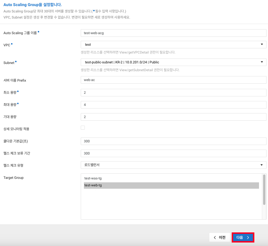 다음 글에서는 NAS를 생성하여 Auto Scaling된 서버에 부착해보겠습니다.